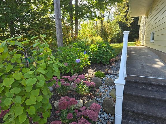 This is a bright.cheery,happy home that has 3 very generous sized bedrooms{note...two masters} with two full bathrooms and gleaming hardwood floors thru out! Beautiful vistas from every room including the large living room of flowering bushes and gorgeous trees. This home has been meticulously maintained . And what about the kitchen? Solid surface countertops, easy close hardwood high quality cabinets with pull out shelves and under cabinet lights. Do the dishes viewing a cornucopia of colors from the surrounding trees especially in the fall.The vast majority of the windows have been replaced by Seaway and the heating and AC are updated. The yard is spectacular with room to run and a special" secret forest "for the children on 2/3 of an acre. Please May I point out that the utility room has a washer and dryer and a deep handy sink. The garage has a separate room for storage and a newer door opener. This home is a truly gem!!!