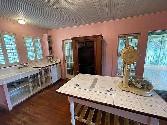 This 1903 Victorian Home is located in the heart of Fitzgerald, Ga in the Historical District. The home features 4 bedrooms and 3 Bathrooms with 3200 square feet of living space with charm and character. The home features original woodwork through out, serval pieces of beautiful stained glass, high ceilings, and many decorative fire places. Downstairs you have a formal living room, formal dining perfect for large gatherings, kitchen, breakfast nook, master bedroom, and sunroom/family room. The kitchen has a farmhouse sink, custom island with cooktop, and custom cabinets for the oven. The Upstairs has three more bedrooms and one full bath featuring a clawfoot tub/shower combo. Outside the home you will find a carriage house for extra storage space. Located across from home are recently redone little park ways with benches to sit and relax on. This is a wonderful opportunity for anyone looking to own a home full of character and history.
