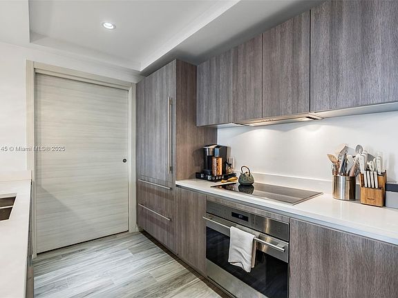 Experience luxury living at SLS LUX in the heart of Brickell. This stunning condo features a private elevator entry, tall ceilings, and a thoughtfully designed floor plan with 2 bedrooms, 2 bathrooms, and a spacious Den. High end finishes and custom built-ins blend design and function, while a large laundry room and pantry provide added convenience. The primary suite includes a custom built-in closet and a spa-like bath with a soaking tub and separate shower. Porcelain floors flow throughout, complementing the chef's kitchen outfitted with premium Wolf, Bosch, and Sub-Zero appliances and sophisticated Italian cabinetry. Residents enjoy world-class amenities including room service, a full-service spa, and 24-hour concierge, & just steps from Brickell City Centre. Available 11/10/25.