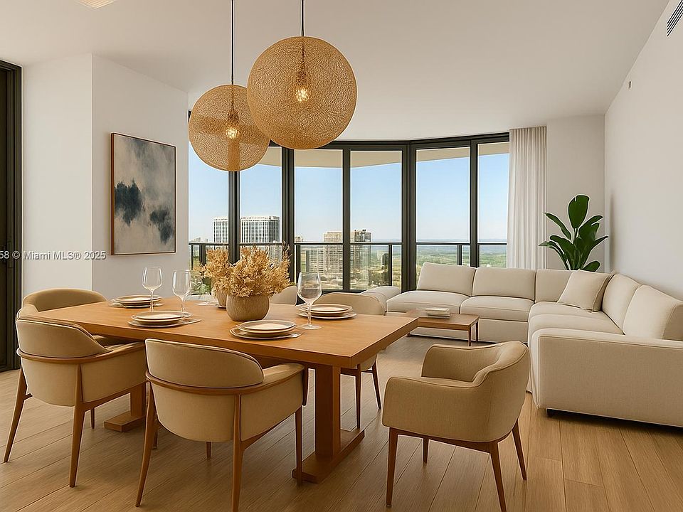 Experience luxury at its finest in this corner unit on the SLS LUX. This 3-bedroom, 3-bathroom offers breathtaking panoramic views of the city skyline, enhanced by floor-to-ceiling windows and an expansive wraparound balcony. The modern open-concept design features a gourmet kitchen with top-of-the-line appliances, sleek European cabinetry, and premium finishes. Each bedroom boasts en-suite bathrooms, ensuring ultimate comfort and privacy. This unit also includes two assigned parking spaces conveniently located on the second floor. Enjoy world-class amenities, including a resort-style pool, fitness center, full-service spa, rooftop pool, private wine cellar, 24-hour concierge, valet parking. This residence is just steps from fine dining, high-end shopping, and vibrant nightlife.