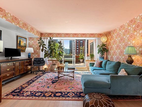 This 2bed/2bath corner unit condo is truly one of a kind! The largest floor plan in the building, the open concept main living area provides a huge amount of space. There's more than enough room for living, dining and office setups. South and east exposures provide an ideal amount of natural light and a street view. The large, south-facing terrace is an amazing place to unwind and is perfect for plants. The unit has been customized and is unlike anything else on the market. The unit has a retro-chic vibe with a colorful kitchen and printed wallpaper throughout. There's high-end hardwood flooring and it's in excellent condition. Both bedrooms have en-suite bathrooms and large closets. Keep everything as-is or customize it to your heart's content- the possibilities are really endless here. The well-maintained building features a doorman, elevator, excellent laundry room, party room and on-site management. Storage unit included. The South Loop location couldn't be more convenient- it's walkable to Grant Park, every CTA train line, Metra, shops, restaurants, museums, Trader Joe's, Target, multiple universities and so much more. This unit is surely a rare find- Schedule your showing today!