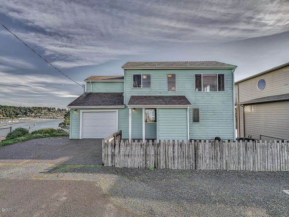 Spectacular Views of Newport Bridge, Yaquina Bay and the Bayfront District. Listen to the Sea Lions or watch the fishing boats from almost every room of the home, including the garage! Close to restaurants, pubs, shops, and the hospital. Large, move-in ready 3 bedroom, 2 bath home with nautical updates. Master Bath has a built in Metos Cedar Sauna. Lots of storage through out the home with a low maintenance front yard and RV pad. Downstairs bedroom has a slider to the back patio. This home is the perfect spot to gather and make years of memories or a possible vacation rental!