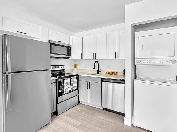 Stainless steel appliances including a Dishwasher in a sleek updated kitchen, In-unit washer & dryer no more trips to the laundromat
