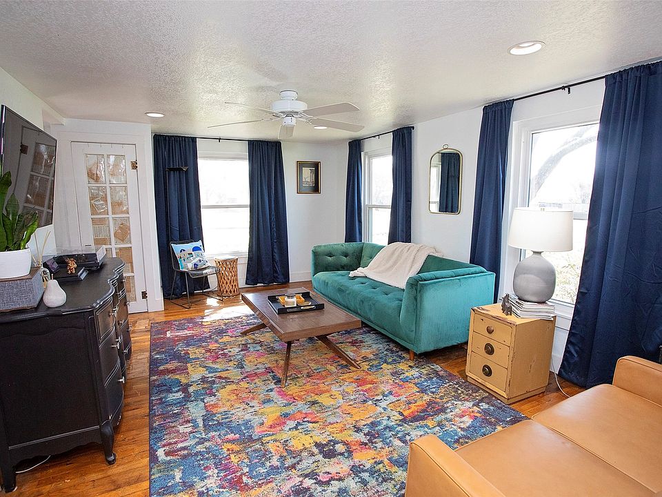 Charmer in wonderful location. Don't miss out, this house is just right. Move in ready home in desirable location in close proximity to schools and many amenities in town. This 3 bed 2 bath home has 1467 SF on a beautiful corner lot containing mature trees. Take notice of the stylish updated lighting which complement the beautiful hardwood flooring and several updates throughout the home. Concrete strip for 3 driveways leads up to detached single vehicle garage that doubles as storage area. Wooden fenced surrounds large yard perfect for kiddos and pets to play or to entertain guests. Two large gates for entry from the front of the property and side of the property allows parking for RV, boat or covered parking under back porch. All appliances to convey with purchase include refrigerator, washer, dryer, flatscreen television, surveillance system and ring doorbell. Insulation blown into attic around 2019. Windows replaced in June of 2019. This one will not last schedule a showing today.