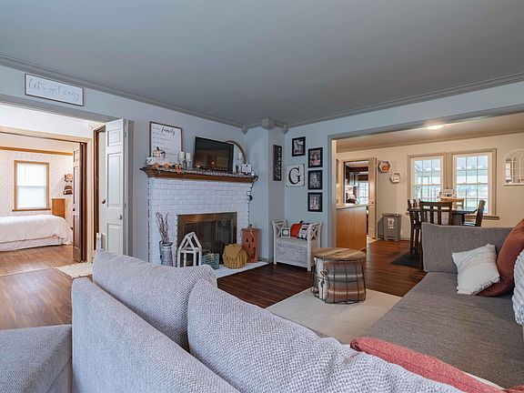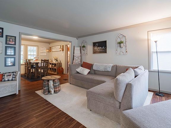 This home is super cute, w/ low maintenance flooring, neutral paint, Crown moldings & more. Large living room w/fireplace (never used, seller was told by previous owners chimney has insulation in it), open to dining room & kitchen, off the kitchen is a pantry w/large counter that makes a great coffee bar. A 2nd front family room is currently used as a 4th bedroom & works great for that if you are in the need of 4 bedrooms. Main level bedroom w/double closets. Full bath has new walls & vanity. Super cute. Also on the main level you will find a large laundry/mud room. Upstairs you will find 2 more bedrooms & a half bath. Tons of storage in the knee walls upstairs. Full basement is great storage, craft area or workshop or space for anything you want. Large covered patio connects house to 1 car detached garage. Large back yard w/new privacy fence. Fence along west side is neighbors, connected to new privacy fence. Yard extends past the fence to the back alley. Large asphalt driveway for plenty of off street parking. Metal roof new 2019, vinyl replacement windows.