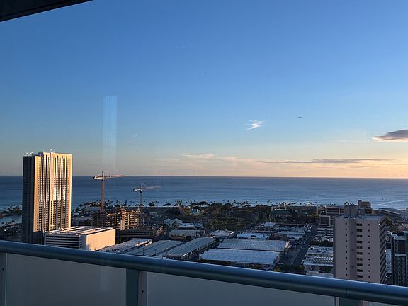 Beautiful furnished 2bdrm/2bath/1pkg in newer building "B" at 801 South St. Corner unit on high floor with wraparound lanai and ocean views and lots of natural light. Wood flooring in living room with upgraded kitchen. In-unit washer/dryer, AC units in each room. Bedrooms have custom California closet systems. Building includes a resident manager, security, and plenty of guest parking. Great location in town near restaurants, stores, and hospitals with Downtown and Kakaako within walking distance. 1 year lease. Rent includes water/sewer. No smoking or pets. We will use Hawaii Board of Realtors Rental Agreement