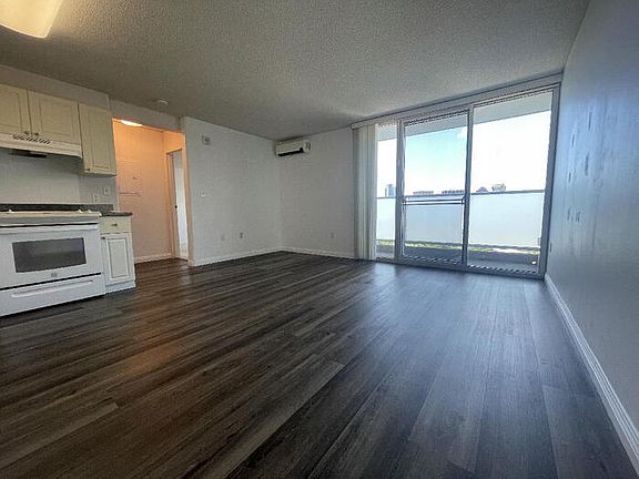 The kitchen comes complete with a refrigerator, and range. There is a washer and dryer in the hallway for your convenience. There are split air conditioners in both the living room and bedroom for your comfort. The complex has a resident manager, 24 hour security guards, a secured entry, elevators, a trash chute, guest parking and a recreation room.