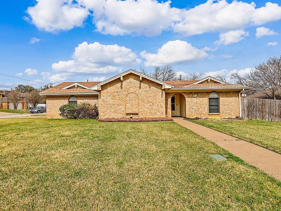 Welcome to your new charming home located in the desirable city of Bedford. This 3 bedroom 2 bath home is nestled on a quiet street and offers the perfect combination of privacy and convenience with it's oversized corner lot. Step inside and you'll be greeted by a bright and open living area, complete with vaulted ceilings and a cozy fireplace. The kitchen is tucked behind the living room right off the garage and also has a small breakfast nook for eating. All three bedrooms are on one side of the house with the primary bedroom offering a bathroom suite as well as having an additional hallway bath. The backyard is a true oasis, featuring a covered patio and a lush lawn that's perfect for outdoor gatherings and relaxation. Centrally located here in DFW this home is just minutes from shopping, dining, and endless entertainment. Don't miss your opportunity to make it yours!
