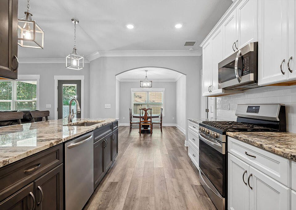 Almost new home in central Niceville just 1 block from Boggy Bayou and 1.5 miles from Lion's Park boat launch!You will love this quiet street with no through traffic, on a cul de sac with an oversized driveway and great curb appeal! This home has luxory vinyl flooring, a beautiful custom kitchen, quartz counters, stainless appliances, gas oven, and breakfast bar area. The kitchen has a well lit eating area which overlooks the large backyard and covered porch.This split floorplan is perfect for privacy and entertaining, with 3 bedrooms on one side and the master bedroom on the other side. The master bedroom is spacious with plenty of room for oversized furniture and a walk-in closet, tub with separate shower.