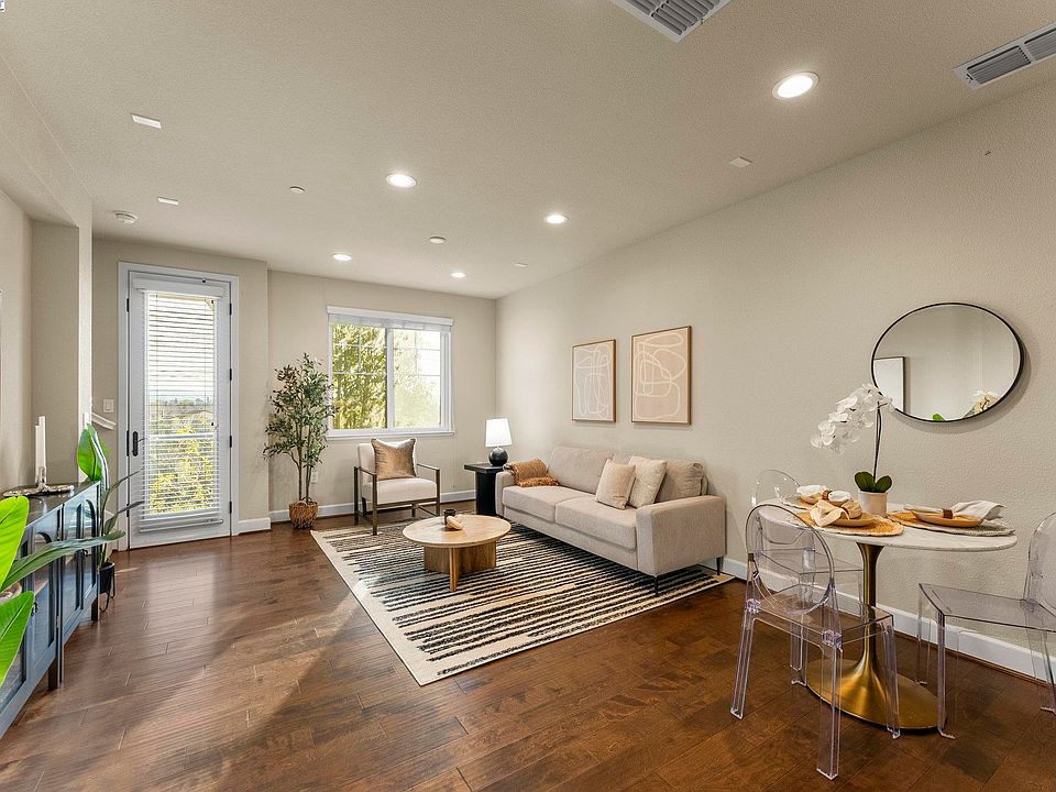Welcome to Tranquility – a modern retreat as peaceful as the street's name. Positioned in Livermore’s Sage community, this home blends sophistication & laid-back charm, w spaces to connect, unwind and create lasting memories. The home’s sleek design & unobstructed front make it shine. Step in to an open floor plan that just begs for housewarming parties & cozy movie nights. A 1st level bedroom & full bath is ideal for guests, in-laws, or an escape for "wfh" days. The 2nd level is where the magic happens: a stunning kitchen w quartz counters, GE appliances, & a peninsula ideal for pancake flipping or wine pouring. Dining & living areas flow seamlessly into a private balcony, perfect for coffee or stargazing. On the 3rd level, the primary suite is your sanctuary, w a spa-like en-suite & a walk-in closet. An additional en-suite bedroom down the hall adds versatility & convenience. With an attached 2-car garage, laundry room, & triple-pane windows that silence the outside world, this home has it all. Don’t forget the perks of the Sage community: pool, gym, parks, trails & more, all at your fingertips. Commuter? Adventurer? Wine lover? The location hits all the marks, minutes from highways, BART, award-winning wineries, downtown Livermore & even more!