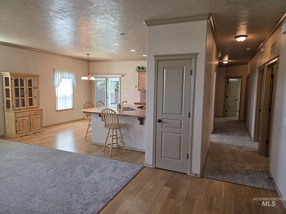 Location. Location. Location. Here's your chance to own a fantastic 3 bedroom, 2 bathroom house with extra wide hallways, extra wide doors, 9' ceilings, crown moldings, designer cabinets and brand new carpet. The floorplan is very open and there is plenty of natural light throughout. The family room has a gas fireplace insert, the laundry room has a separate sink, and the yard is fully fenced with a full sprinkler system for easy yard maintenance. The backyard covered patio is huge and the attached 2 car garage comes with a keyless entry system (and remote).The crawl space includes a fan with humidistat so you don't have to worry about mold. All of this in a great location that is close to all the amenities that Meridian offers. This place is move in ready and won't last long!