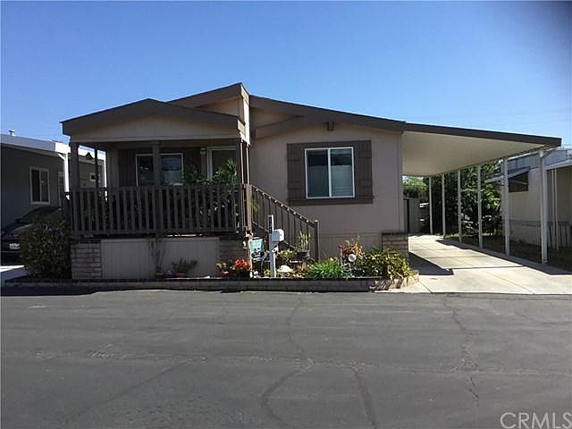 Great senior mobile home park in San Dimas. Almost new manufactured home built in 2014. Laminated flooring in living area. Has great cozy porch. Shed included. Side vinyl fenced yard. This is high end Mobile. Great place to call home. Park very friendly and low rent.