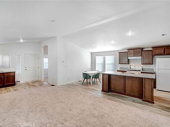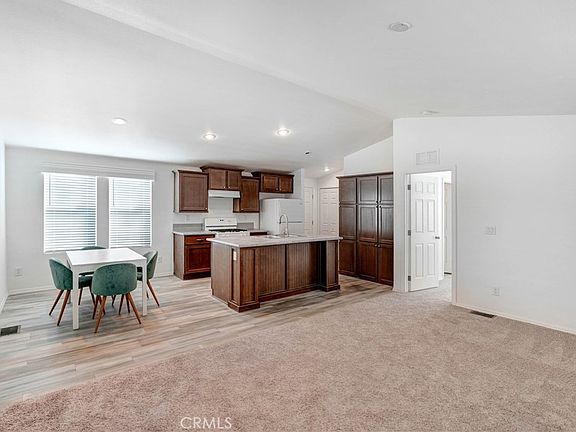 Price has been reduced, New 2022 home with open floor plan, lots of storage, vinyl LUX floors in wet areas, kitchen with tile backsplash and pull-out faucet with sprayer, kitchen island, (there is room for dish washer, but not included) refrigerator, oven with range hood, bedrooms on opposite sides of the home for privacy, indoor laundry, good sized porch with Trex floor decking with mountain views, ample backyard space, 2 car covered carport and more. Home is in a nice 55+ park with low space rent.