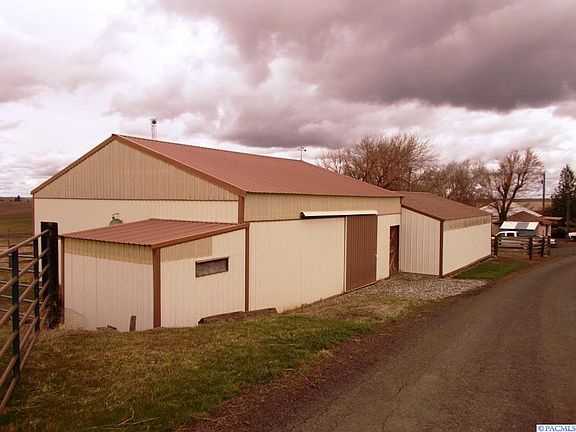 Great horse setup on the edge of Colfax. 4.9 acres+/- , fenced pasture, large three-stall barn with runs for each. The barn has a wonderful 40'x40' indoor arena, hay storage and concrete wash area. There is a large woodworking or tack shop with heat and electricity on the property next to the house. Covered carport is attached to the "oat shed." Extra large parking area for your stock trailer, camper, etc. The house is a cozy 2 bedroom/1 bath over a full basement. Some updates in the kitchen. Large front deck offers beautiful sunset/sunrise views with easy-to-maintain yard. All new septic system installed in 2012. The roof is newer and in good condition.