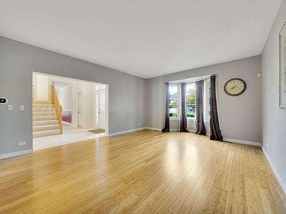 WELCOME HOME to your grand, custom-built, 2-story house on a corner lot across the park! Step inside and be wowed by the beautiful design of your home, from the 2-story foyer, to the dual stairway, to the custom cabinetry and trim, you will be impressed with the thoughtful details and functionality of this home's layout. From the foyer, you will find the formal living room on the left which features bay windows and sustainable bamboo flooring. On the right, the dining room, finished with chair rails and crown molding, provides ample space for hosting your next holiday meal. The gourmet kitchen boasts top-of-the-line appliances, including a 5-burner stove fit for a chef, a Bosch dishwasher, a high-end counter-depth refrigerator, an instant hot water dispenser, and more. In addition, the 42" Alder wood cabinetry w/ slide-out drawers, the walk-in pantry, the 6-ft island for prepping and seating, and breakfast room large enough to accommodate a full size dining table, make this area perfect for entertaining. The spacious family room is ideal for gatherings, game nights, or cozying up to the wood-burning fireplace w/ gas starter. Windows galore make everything feel light and airy. Sliding back doors escort you to the lovely backyard with brick paver patio, extra large shed, plus in-ground sprinkler system for your convenience. Back inside, dual stairways (1 from foyer and 1 from kitchen) usher you to the 2nd floor loft area with built-in desk. The expansive primary suite will surely impress you with its cathedral ceilings and two separate walk-in closets. Drenched with natural light from the skylight, relax in your primary bath, complete with a whirlpool tub, separate shower, water closet, dual sinks, and vanity. Also on this floor are the 2nd and 3rd bedrooms which are both generously-sized and bright, and another full bathroom with skylight and a tub-shower combo. The 4th bedroom, currently set up as an office, can also function as a gamer's room, craft room, or content creator/streaming studio. Finally, rounding off this roomy upper level, you will be delighted to find a dedicated laundry room with sink. Downstairs, the full basement offers endless possibilities with roughed-in plumbing and a partially-finished area ready to serve as a workshop or hobby room, equipped with 220 amp service. Other highlights of this home include a newer roof, newer furnace, newer A/C, newer hot water heater, and back-up sump pump for worry-free living for years to come. The house also comes fitted with Ethernet wiring, multi-zone audio, smart thermostat, and wiring for alarm system. Original owners did not spare anything in customizing every corner of this home with quality upgrades and thoughtful design elements. Located in the sought-after Armani Circle neighborhood, minutes from shopping, expressways, schools, and restaurants, and across the street from Armani Park! House is sparkling clean and ready for you to just move in. Come see your new home!
