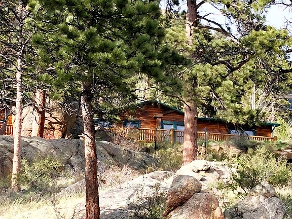 *NEW PRICE* Charming home on pristine 2.63 acres with PANORAMIC LONGS PEAK MOUNTAIN RANGE VIEWS! Secluded,within city limits,close to downtown. Beautiful open floor plan with kitchen designed for easy entertaining. Brand new wood pellet stove. Gorgeous rock outcroppings around the property. HUGE ADDITIONAL HEATED BUILDING(workshop/garage) 1120 sf with race deck flooring plus 400 sf loft. Close to shopping and The Riverwalk. Only 3 mi to RMNP. **Short term rental permit in place**