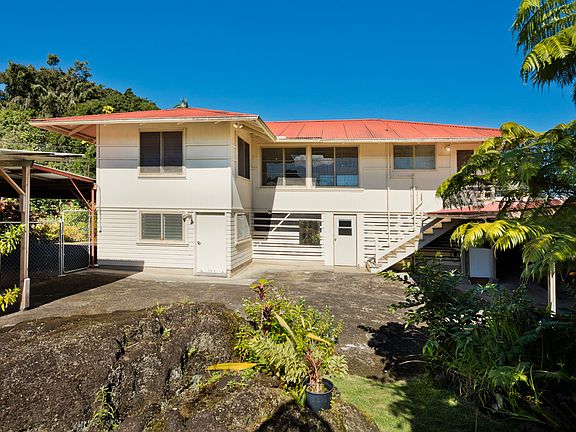 Offered for sale for the first time, this original Hilo family owned property is truly one of a kind. The unique lot features a natural spring, koi pond, and beautifully established gardens filled with orchids and anthuriums beneath a lush canopy of hapuʻu ferns, all within a fenced area. The low-maintenance yard blends seamlessly with the natural landscape and includes a circular driveway along with extensive covered parking and versatile workspace areas. The square-shaped lot provides an expansive presence along Waianuenue Avenue.