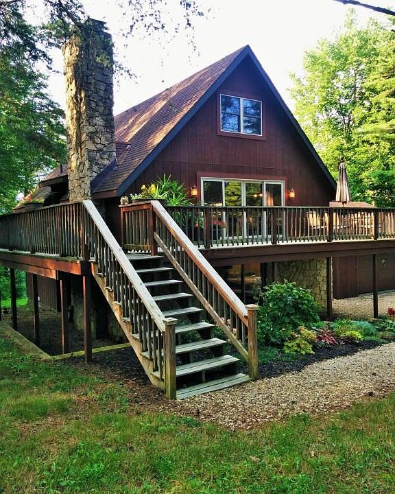 Enjoy the resort lifestyle of this 4 bedroom, 3 bath home situated on two parcels in the beautiful Hide-A-Way Hills. Sit and relax on the over sized deck and enjoy the views. The list of renovations go on and on as you enter each of the three stories of living space. The detached garage compliments the home perfectly. Jacuzzi tub, Gallery style kitchen with stainless steel appliances, New hardwood and carpeted floors throughout, 1 electric insert fireplace and 1 woodburning fireplace, stamped concrete floors in the finished walkout basement. Included in the sale is a 91' Sweetwater 24 ft. pontoon boat and pool table. Conveniently located to the lodge, pool, tennis and back gate.