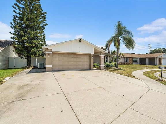 One or more photo(s) has been virtually staged. Welcome to your Florida oasis! This beautifully remodeled 2-bedroom, 2-bath, 2-car garage home is tucked away on a quiet cul-de-sac in the desirable Orchid Lake community. Inside, you’ll find easy-maintenance wood-look ceramic tile flooring, vaulted ceilings, and an open split-bedroom floor plan filled with natural light. The updated kitchen features granite counters, stainless steel appliances, and a center island with a breakfast bar—perfect for entertaining. The spacious Great Room opens through sliders to a screened lanai and fully fenced backyard, offering plenty of room for a pool. Both bathrooms have been tastefully remodeled, and the large garage with an extra cement pad provides bonus parking for a boat or guests. Conveniently located near shopping, dining, golf, and Sims Park, with easy access to Gulf Coast beaches, Downtown New Port Richey, and just 45 minutes to Tampa International Airport. With no HOA, NO CDD, and NO Flood Insurance Required, this move-in-ready home captures the best of Florida living!