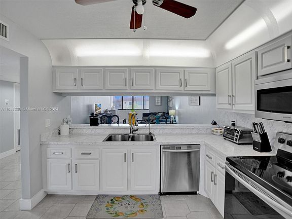 10% down ok! Fabulous 2/2 remodeled condo 5th floor near elevator. ALL AGES, NO PETS. Upgrades include: Open kitchen, SS appliances, newer cabinets. Waterproof vinyl plank flooring (Dewey Meadow Oak) in living areas. Tile in kitchen, hall & baths. Primary bath vanity quartz top, double sinks. Spa like stone walk-in shower +frameless shower door. Guest bath w/new vanity/marble top. Over $12K for all impact windows, impact front door including side light! 3-stage water filtration system. HUGE 9 X 10 laundry room w/new GE washer/dryer 2023. A/C new 2022 AND restored air ducts w/anti-mold coating to last 10 yrs + antibacterial U.V. light! Water htr 2022. Nest thermostat/Ring doorbell stay! Recessed lighting in halls/bathrooms. No rentals 2 yrs. Roof-2017. PARKING LIMITED:1 SPACE PER UNIT.