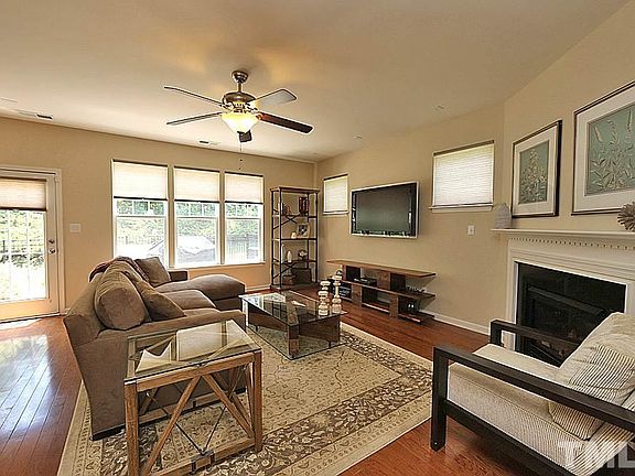 Walk to the Streets of Southpoint! Gorgeous 3 BR, 2.5 BA end unit town home w/ downstairs office, 3rd floor bonus room, 2 car garage, & partially fenced backyard in excellent SW Durham location. Hardwood floors downstairs. Kitchen w/ stainless appliances, island w/ breakfast bar, gas range, and quartz stone counter tops! Huge master BR w/his and hers walk-in closets. Lawn maintenance done by HOA. Flat screen TV in living room conveys. Conv. to I-40, Duke, UNC, RTP, great restaurants and shopping!