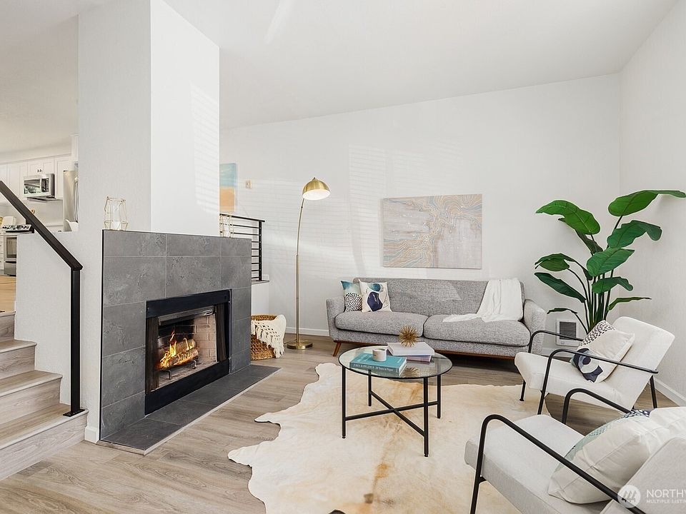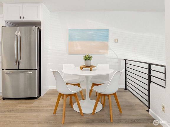 Fully remodeled Mukilteo townhome in a quiet community minutes to beach, trails, coffee & more! Thoughtful updates:matte-black accents, quartz counters, designer lighting, LVP & custom metal railings. Soaring 10-ft entry opens to a bright living room w/ updated windows, wood-burning fireplace. Dining flows to a dream kitchen w/ SS appl, statement tile & an office/den alcove plus a 1/2 bath. Upstairs:2 spacious ensuite bdrooms w/ generous closets (2.5 baths total). Full-size laundry, newer H2O heater, detached garage + off-street parking + storage. Private deck backs to a serene greenbelt on a quiet,dead-end street. Near Mukilteo Beach, parks, train station, bus lines & fast freeway access. Modern design & everyday ease in a prime location!