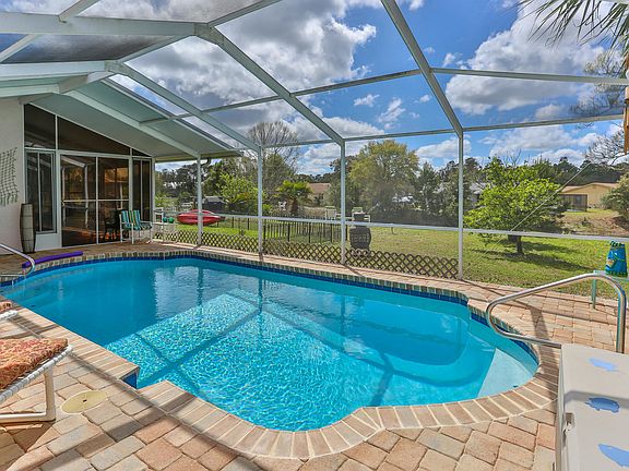 BACKYARD PICNICS! Located on a Lake in the Heather Community. Beautiful 3/2/2 POOL Home is tucked away on a Cul-De-Sac Lot. Open Floor Plan with Laminate Wood Flooring, Remodeled Kitchen w/Thermafoil Cabinets, New Countertops, Built in Hutch & Wine Rack plus Breakfast Bar. Master Suite w/Sliders to the Pool, Maple Wood Cabinet w/Granite Counter, Separate Garden Tub & Shower. Bonus Room off of the 2nd Bedroom, Cathedral Ceilings, 2004 A/C & 2004 3-D Roof, Love the Backyard: Gorgeous Sunsets, Florida Room w/ Vinyl Windows, Solar Heated Pool w/Diamond Brite Finish Plus Screened and Adorned by Pavers, Dock for Fishing or Nature Watching..