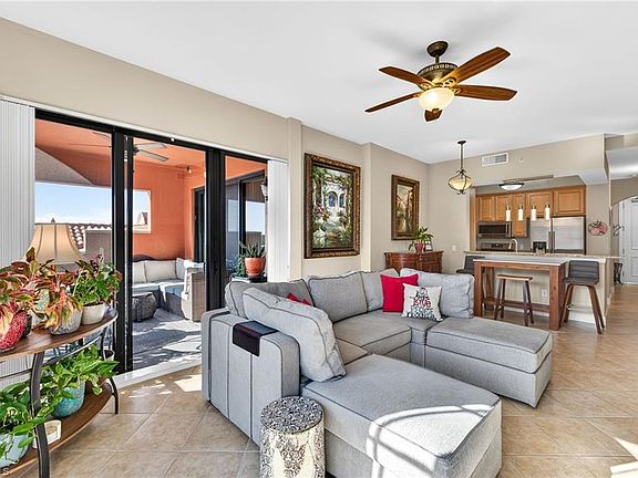 Experience elevated living in this beautifully updated **TOP-FLOOR CORNER** 2-bedroom + den, 2-bath END UNIT in the highly coveted Residences at Coconut Point. Rarely available, this is a premium location !! **TWO CLIMATE-CONTROLLED STORAGE UNITS** provide exceptional utility—perfect for seasonal décor, luggage, golf gear, or anything requiring a protected environment. Step inside and immediately feel the difference—*soaring 10’ ceilings*, *8’ solid wood doors*, and diagonally laid tile floors throughout, create a bright, open, and refined environment. The open-concept living area flows seamlessly onto a spacious, open-air balcony through **impact-rated sliding doors**, perfect for year-round outdoor enjoyment. The primary suite is a serene retreat with dual vanities, a glass-enclosed tiled shower, a built-in CEDAR LINEN CLOSET, and an impressive walk-in CALIFORNIA CLOSET. A smart split-bedroom layout enhances privacy, with the guest bedroom offering generous space and its own bath. The den adds versatility—ideal for a home office, reading nook, dining room, or hobby space. AC 2023, HWH 2022 !! Additional convenience of a large utility room with storage spaces designed by California Closets. Enjoy resort-style amenities including a shimmering pool & spa, fitness center, community room, BBQ area, bike storage, and a vehicle wash station. HOA fees include premium cable, high-speed internet, water, sewer, and trash. This residence also includes *two parking spaces*, with *one reserved directly beneath the building* for unmatched convenience. Live steps from the vibrant Coconut Point Mall—coffee shops, fine dining, salons, and exceptional shopping are right outside your door. Plus, you're minutes from Hertz Arena, RSW Airport, I-75, and the stunning Bonita and Barefoot Beaches. A perfect blend of convenience, comfort, and elevated coastal living !!