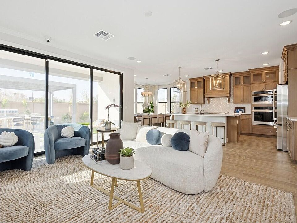 Welcome to Manor at Legacy Place, a beautifully planned community close to Loop 101, Westgate's entertainment, and premier shopping and dining. This elegant Hampton plan offers 5 bedrooms and 3.5 baths with refined Classic-inspired touches throughout. The gourmet kitchen stands out with White Shaker cabinetry, Arctic White quartz counters, and GE Café stainless appliances, including a French-door fridge. A first-floor bedroom with its own bath adds flexibility for guests, multigenerational living, or office space. The open great room flows to a covered patio for effortless indoor-outdoor living. Upstairs, a roomy loft, three secondary bedrooms, and a luxurious primary suite with dual vanities, a soaking tub, and a walk-in shower complete this stunning home. Plan your visit today!