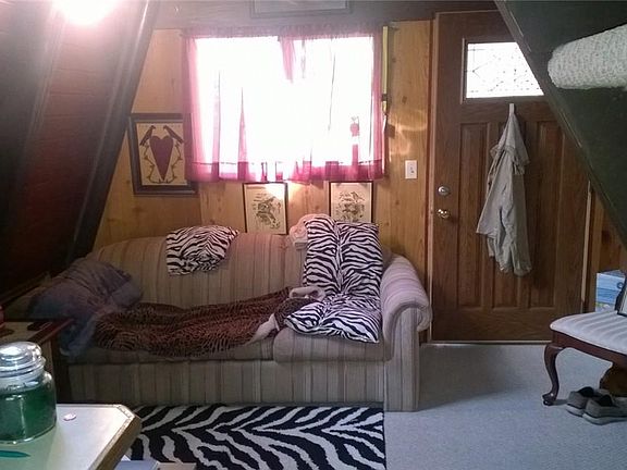 Join the "Tiny House" Revolution. Trick out this A Frame to meet your needs. Nice corner lot in the gated community. There is a half bath on upper level near bedroom and 3/4 on main. Detached shed houses laundry area and has tons of storage space. Includes private community beach with boat launch and cabana. This house could be a great get-away or a easy, affordable housing option. Can be a rental. Owner will include electric fireplace. Very Cozy! Owner financing available.