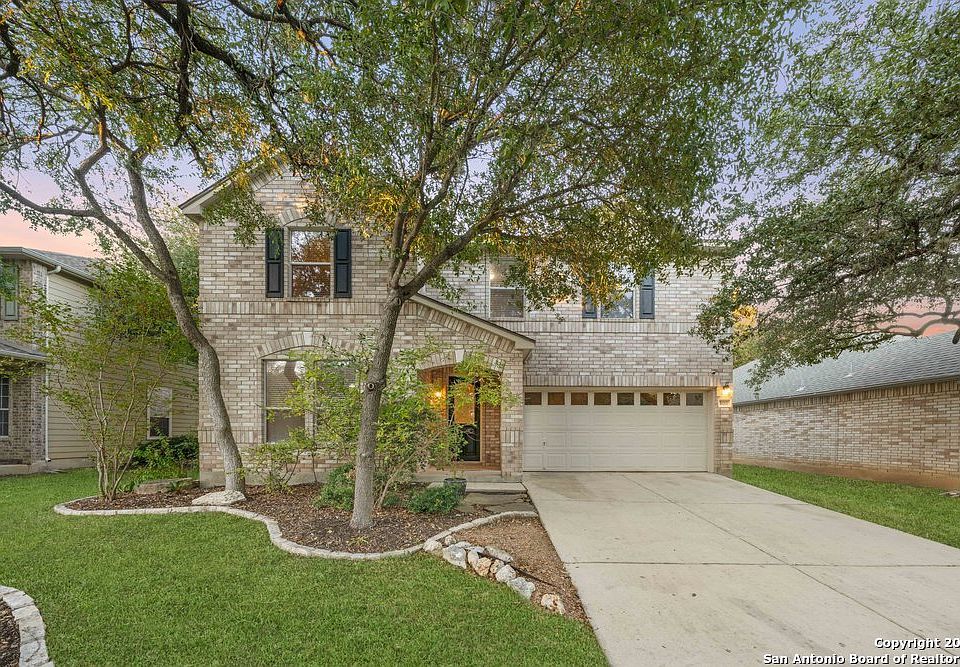 You must see this charming 2-story home located in the highly desirable Stage Run neighborhood! This spacious 4-bedroom, 2.5-bath home with a 2-car garage offers all bedrooms upstairs plus a versatile loft for extra living space. Enjoy beautiful TRAVERTINE flooring throughout the main level, featuring two living areas - a formal living room and a cozy family room open to the eat-in kitchen - perfect for entertaining. The kitchen boasts granite countertops and a functional layout for everyday living. Upstairs features new carpet in the bedrooms and hardwood laminate flooring in common areas. Step outside to a peaceful backyard shaded by mature trees, ideal for relaxing or hosting gatherings. Residents of Stage Run enjoy access to a community pool, playground, tennis court, and park. Conveniently located just minutes from La Cantera, The Rim, Six Flags, grocery shopping, fine dining, and premier retail, with highly rated schools nearby. Schedule a tour for this MOVE-IN-READY gem at an absolutely unbeatable price!