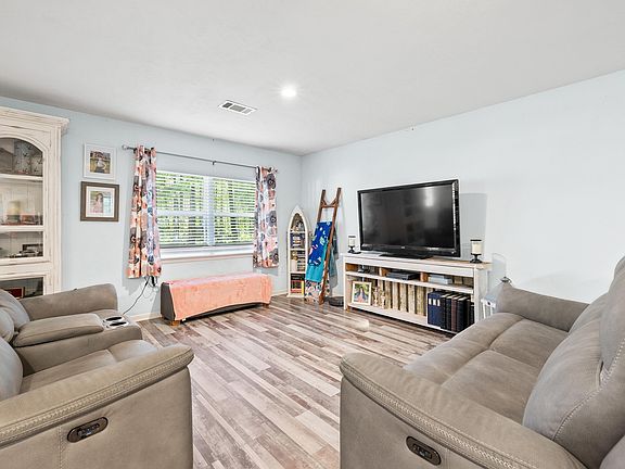 Come see this open floorplan home in the country on 3.47 acres. With 3 bedrooms and 2 bathrooms, this property has laminate hardwood and tile throughout the house. The master bath has plenty of space and offers a jetted tub and a double vanity. The kitchen has stainless appliances with plenty of countertop space, under-counter storage, and cabinets. In the back yard ther is plenty of space and includes a fully fenced in area, and the out-buildings are great for multiple uses.