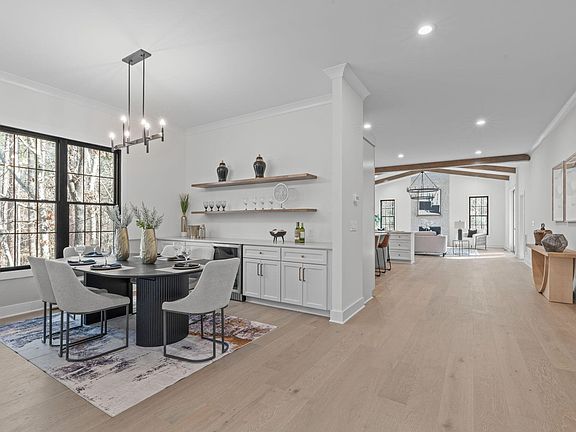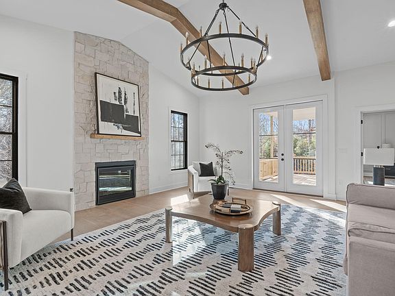 Indulge in luxurious indoor-outdoor living in this exquisitely designed modern farmhouse. Soaring 10' ceilings on the main level and 9' upstairs create a grand, open ambiance, while the dramatic vaulted ceiling in the great room serves as a stunning architectural centerpiece. Rich hardwood floors flow throughout the main living areas, complementing the warm, inviting fireplace. The chef's kitchen is a true showpiece, featuring sleek quartz countertops, a striking designer tile backsplash, an upscale lighting package, and a sophisticated butler's pantry—ideal for entertaining with ease and style. Retreat to the spa-inspired primary suite, boasting a boutique-style walk-in closet with center island and a lavish wet area complete with an oversized soaking tub and luxury shower system. Thoughtful touches like elegant designer cabinet hardware, recessed lighting, and a high-efficiency tankless water heater elevate everyday comfort. With dedicated golf cart parking and seamless indoor-outdoor flow, this home blends elevated design with effortless lifestyle.