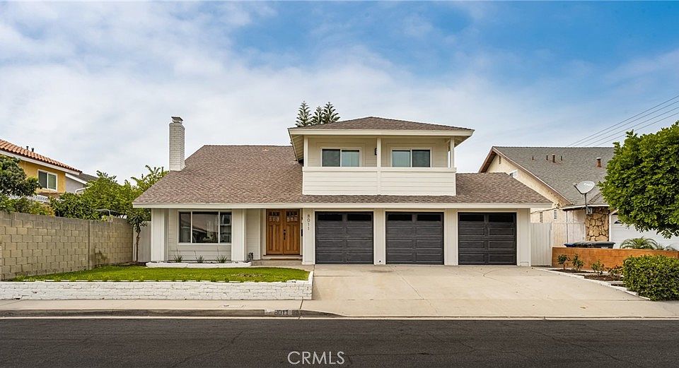 Welcome to 8011 Rose Street, a beautifully updated home in the desirable city of La Palma. This spacious residence offers a thoughtful floor plan with a downstairs bedroom and full bathroom, perfect for guests or multi-generational living. Upstairs features a large primary suite, two additional bedrooms that share a Jack and Jill full bath, and a generous bonus room of approximately 400 square feet over the garage. The bonus room includes a wet bar with sink and mini refrigerator, two new patio sliding doors with access to the front covered balcony, and is ideal as a game room, media room, or could be converted into two additional bedrooms or a 2nd primary suite if desired.