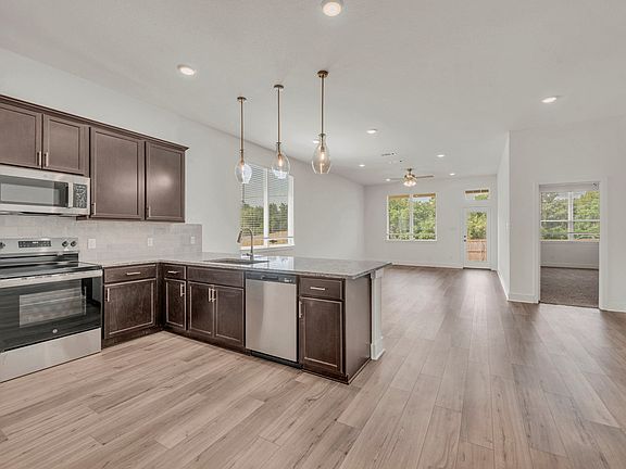 This 4 bedroom, 3 bath home is exactly what you've been looking for. Featuring a secondary bedroom suite, it's the perfect home for a multi-generational family, those looking for a private space for guests, or added privacy for one of your children. With walk-in closets in every bedroom and dual walk-in closets in the primary, you won't run out of storage space. Walk into your open concept living area, where you'll have more than enough room to cuddle up or host all of your friends and family. Additional Options Included: A Head Knocker Cabinet in the Secondary Bathroom, Additional LED Recessed Lighting, Upper Cabinets Over the Washer and Dryer, Upgraded Modern Plumbing Fixtures, and an Upgraded Shower in the Primary Bathroom