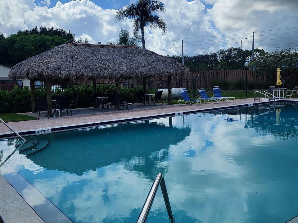 Welcome to this charming 2-bedroom, 2-bath ground-floor Villa style condo located in a desirable 55+ community. This well-maintained home features vaulted ceilings that create an open and airy feel, along with a freshly painted interior for a bright, move-in-ready look. Enjoy the convenience of both front and rear entrances, plus a covered and screened patio perfect for relaxing or entertaining. The split bedroom layout offers privacy and comfort, while the community offers a pool and clubhouse for activities.. Ideally situated, this condo offers a low-maintenance lifestyle with all the comforts you need in a vibrant, active-adult setting. Don't miss this opportunity to enjoy Florida living at its best!