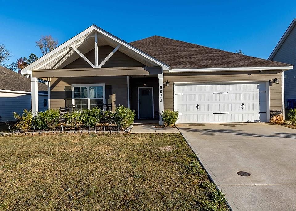 Welcome to this stunning 4bd 2ba single-story home that perfectly combines comfort, style, and functionality. From the moment you arrive, you are met with a 2-car garage and a charming covered front porch ideal for morning coffee or relaxing evenings. Step inside and be greeted by a bright, open floor plan designed for effortless living. The entryway features beautiful wainscoting and wood-style LVP flooring that flow seamlessly throughout the main living spaces. The spacious family room connects easily to the dining area and kitchen, creating the perfect layout for entertaining or enjoying quiet family time. The kitchen offers both practicality and style, with ample counter space, modern finishes, and a layout that makes cooking and hosting a joy. The primary suite is your private escape, boasting plenty of space, plush carpeting, and an en suite bath with a double vanity, a separate shower and soaking tub, and separate toilet room. The additional bedrooms provide flexible space for family, guests, or a home office—whatever your lifestyle demands. Step out back onto the covered patio featuring a beautiful stone fireplace w/ an area for a mounted TV. The completely fenced back yard offers privacy and endless possibilities. Situated in a cul-de-sac. Schedule your private showing NOW!