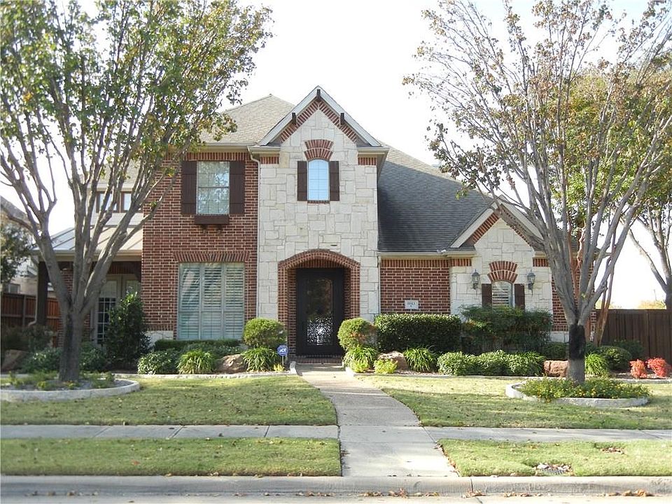 Beautiful corner lot on a cul de sac adjacent to a hiking and biking trail. Resort style pool with gorgeous sunsets. Wall of windows overlooking nature. New iron front door, hand scraped hard wood floors, ss appliances, 5 gas burner, iron wine closet, 2nd bedroom with full bath on 1st floor can be used as study, 3 beds upstairs with 2 full baths, tandem garage with overhead storage, vaulted ceilings in master, projector in media and Bose surround speakers stay, 2 iron staircases, plantation shutters, oversized hot tub, water fountains, multiple sitting areas in backyard. 2018 new roof and gutters. Close to Tollway,121,25 mins to DFW airport, Shops at Legacy, The Star and more. Location! Location! Must See!!