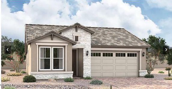 From the moment you arrive, you'll notice the attention to detail throughout! Located within a gated community offering a splash pad and recreational spaces, and just minutes from convenient I-10 freeway access, this home delivers both comfort and connectivity. Step through the 8' door into a light-filled, open-concept layout with 9' ceilings throughout, that's designed for the way you live. The heart of the home is the open kitchen, complete with sleek 42'' cabinetry, quartz countertops, stainless-steel appliances, a roomy pantry. The spacious center island perfect for meal prep or morning coffee. It flows seamlessly into the dining area and great room, making entertaining effortless. the primary suite is your private retreat tucked away in the back of the home is owners suite with large bedroom and bathroom with dual sinks, and a generous walk-in closet. There is bedroom, in center of home with a full bath and teen room next to it. Two additional bedrooms share a well-appointed bath near the front of the home, creating the ideal split-bedroom layout for privacy. Step outside to your covered patio, perfect for weekend BBQs with the included gas stub. Stylish 9x35" stone tile flooring in all main areas, ceiling fan prewiring in all rooms/patio, and thoughtful designer touches throughout bring both beauty and function to every room. This home truly has it all, a flexible floor plan, modern finishes, experience how beautifully this Sapphire fits your lifestyle!
