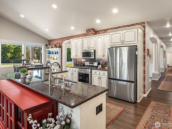 Rare opportunity to own a single story home in this coveted 11 home gated community of Kazillion Trails West. This meticulously cared for home has been updated throughout. All primary floor living includes 3 beds with oversized Primary ensuite renovated spa bath w/ soaking tub. Open concept kitchen is filled w/natural light & boasts a massive granite island, custom cabinets, rock fireplace w/custom mantle, new flooring that flows out to the covered back patio for outdoor living & seamless entertaining. Surrounded by natural beauty w/room to roam and play. Backs up to NGPA Easy access to Centennial trail & Lake Cassidy, RV parking, 3 car garage, fully fenced 1+ acre lot w/room to build a shop Your sanctuary awaits Don't miss this Dream Home!