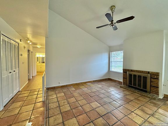 This property qualifies for a 15K grant! to pay for your closing costs. To get more info reach out.. Check out this charming home in Northeast San Antonio - Near Randolph AFB & Fort Sam! This beautifully maintained home in the highly sought-after Northeast San Antonio area is nestled in a quiet neighborhood just minutes from Randolph Air Force Base and Fort Sam Houston, this home offers both convenience and comfort. When you step inside you will find an inviting open floor plan, featuring vaulted ceilings and sunken living room flooded with gorgeous saltillo tile flooring with a cozy wood-burning fireplace.. The primary suite offers a retreat with double doors large closets features and an amazing sliding glass door that leads you into your beautiful backyard with a covered patio. Enjoy Texas evenings in the private backyard, perfect for relaxing or entertaining and cooking. Located near top-rated schools, shopping, dining, and major highways, this home is perfect for military families, first-time buyers, or anyone looking for a great location. Don't miss out-schedule your showing today!