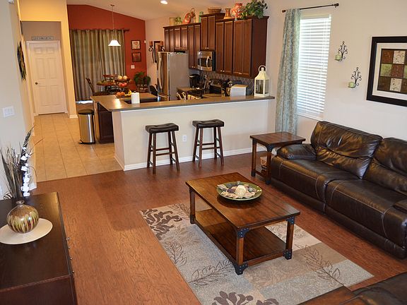 Have you heard of Connerton? You should have. This award winning, master-planned community has so much to offer, and this is the most affordable home available here! Sitting on 4,800 acres of wildlife preserve, this naturally beautiful community boasts an extraordinary water park & resort-style pool, sports & fitness center, Kids Zone, tennis, basketball, & volleyball courts, & an outdoor amphitheater. Endless activities at the clubhouse help neighbors connect with one another. There's a 3,000 acre nature preserve w/ trails & boardwalks that really let you experience nature, exercise, or just drift away. And this impeccably kept, Taylor Morrison built beauty is nestled within, waiting to welcome you home. As you pull up, you'll notice the beautiful landscaping & the inviting, pavered front porch, perfect for relaxing as you enjoy watching the sunset. Enter into the ample gathering room with its hand-scraped dark WOOD laminate FLOORS, and flow through this OPEN FLOOR PLAN into the delightful kitchen featuring a BREAKFAST BAR, Corian counters, STAINLESS STEEL APPLIANCES, a gorgeous backsplash, 42" WOOD CABINETS w/ crown molding, an island, a built-in desk, & a spacious BREAKFAST NOOK. Sliders lead you to the relaxing, SCREENED & pavered back PATIO area with plenty of room to entertain and grill out. The roomy master retreat has WALK-IN closet & en suite bath w/ DUAL VANITY, GARDEN TUB, separate shower, & private water room. Sellers offering 13 month HOME WARRANTY. Ask about the lower CDD's.