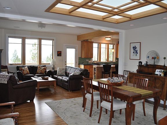 Amazing country property with custom built home! This gardeners delight is located on 5.89 acres with valley views! The home features: 2 bedrooms & an office plus a bonus room (yoga room or study); Open floor plan with several skylights/solar tubes & bamboo flooring; Large kitchen offers an island with seating; Laundry/mud room with built in washer/dryer, sink & lots of counter space. Outside you will find a composite deck, 300 sq ft of 2 ft high garden beds, 6,600 gal rain water collection system for irrigation with 4 irrigation distribution points & drip system in place, several fruit tree's & a greenhouse with electrical service. There is also a tractor shed & a storage shed. 1 acre is completely deer-fenced with gates. Some additional upgrades include: 2,000 gallon in-ground holding tank, whole house generator, hot water re-circulation pump, 900 gal Propane tank, Propane hookup on deck for gas grill - full list of upgrades available. A special property ready for you to tour!