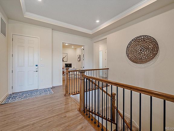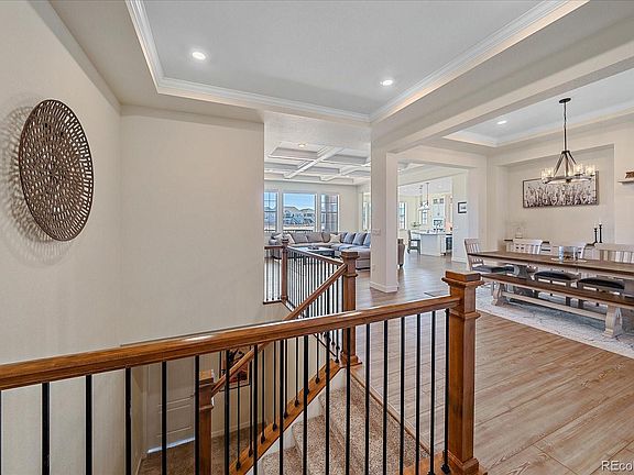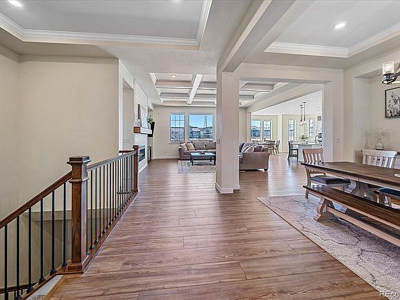 Gorgeous and meticulously cared for walkout ranch situated on a 1/4 acre lot with expansive south facing views in Sterling Ranch! The open floor plan on the main level features a stunning kitchen with quartz counters, oversized island, gas range, two ovens, two dishwashers, coffee bar and walk-in pantry. The adjoining breakfast nook is flooded with southern natural light and amazing views along with a slider to the expanded back deck. The kitchen opens into the family room which also has those gorgeous views to the south, beautiful ceiling beams, a shiplap wall and gas fireplace. In addition to  the breakfast nook, there is separate space for a dining room or additional living room with wood flooring. A private office with with French doors and recessed lighting is just off the front foyer. Enjoy the views from the south facing primary bedroom with coffered ceiling and an additional seating area (or second office) along with a 5-piece ensuite bathroom with double sinks, soaker tub, walk-in shower and large L-shaped walk-in closet. Both additional bedrooms have ensuite bathrooms and walk-in closets. The main-level laundry room features dual entrances, a utility sink, upper and lower cabinets and a folding table. Washer & dryer are negotiable. Other plusses on the main level: mud room from the 2-car garage with cabinets and a walk-in coat closet, $10K in window coverings, several updated fixtures and ceiling fan prewires in bedrooms. The walkout basement is a blank slate of over 3200 square feet! Seller added over $70,000 in updates to the backyard and outdoor living areas including expanding the deck, sun shade, a beautiful firepit area and turf for the pups. The Sterling Ranch Rec Center is just a short walk away along with other amenities in the community including the Sterling Center, parks and trails. Quick access to Santa Fe and Wadsworth as well!
