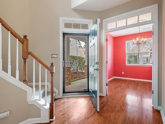 FANTASTIC LOCATION! Unique "manor home" only attached by storage units on both sides.Lives like a detached home. 3 bdr 2.5 bath, 2 car garage.Kitchen has hardwoods, ss appliances, granite, and refrigerator conveys. Open floor plan with lots of natural light. Owner's suite has vaulted ceiling, garden tub and sep shower. Laundry room on 2nd fl , washer and dryer convey. Close to Southpoint Mall, restaurants, Target, the American Tobacco Trail, UNC, and Duke. Low HOA and they maintain the grounds. Property backs up to a wooded buffer for added privacy.