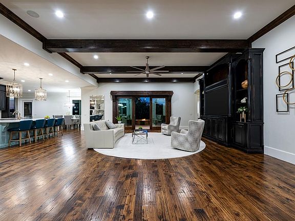 Live the life you deserve on the WATERFRONT in one of OKC’s finest gated additions, Cobblestone. Situated on a quiet cul-de-sac this custom-built one-owner home spared no expense with high-end finishes and designer touches. Handicap accessibility with zero thresholds, 3080 wide doorways, and ADA complaint living. Timeless hickory hardwood flooring throughout, with custom woodwork including beamed ceilings. Floor-to-ceiling sliding glass doors open up to the water views and two backyard patios, one equipped with automatic screens and an outdoor HVAC mini-split, allowing enjoyment of outdoor living spaces year-round. A RARE find..nearly 80% of the SQFT is first-floor living space. The master suite includes a sitting space with a water view, a large walk-in shower, a MASSIVE closet, and a soaking tub. 3 full beds downstairs, one a second master with steam shower, and a 4th multi-use room. Upstairs includes a full bath, large home office, storage room, and HOME THEATER. WELCOME HOME!