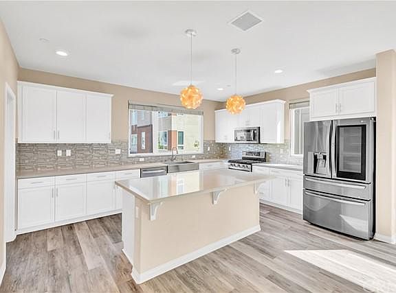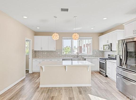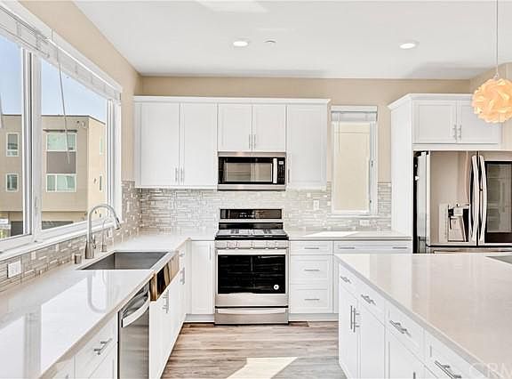 Beautiful and Modern End-Unit (PUD) Townhome, Like-New & Built in 2018! This Stunning 4 Bedroom, 3.5 Bath Home has over 2,300+ Sq.Ft of Living Space. Enter the Main Entry Foyer with 1st Floor Master Suite with Walk-in Closet & Attached Private Bathroom perfect to use as a In-Laws Suite. The Bright & Spacious Floorplan on the 2nd Level has Recessed Lighting & Upgraded Wood Laminate Flooring installed throughout. Great Open Concept Living & Dining Space with Dual-Pane Windows that fill the Home with Abundant Natural Light. Designer Large Kitchen with Pendant Lighting, Quartz Countertops, Beautiful Backsplash, Sleek White Cabinets, Kitchen Island/Breakfast Bar & Walk-in Pantry. Stainless Steel Appliances, including Stove/Oven, Microwave, Dishwasher and LG Refrigerator. Upstairs on 3rd Floor includes a 2nd Executive Master Bedroom Suite with Walk-in Closet, and Gorgeous Bathroom with Double Sinks/Vanities, Glass Tile Backsplash, and Walk-in Shower. 2 Additional Spacious Bedrooms are also conveniently located on the 3rd Level, one includes a Full Pull-down Murphy Bed already installed. 3rd Full-Bathroom that includes a Shower/Tub. Stacking LG Washer and Dryer located in Upstairs Hallway. 2-Car Garage with Direct Access and Storage. A/C included with Wifi enabled Thermostat. Tankless Water Heater. Nest Doorbell. Great Location with Close Proximity to Freeways. Walkability score is 87. Nearby to Shopping, Restaurants, Portos Bakery, Wilderness Park, Stonewood Center, and Rio Hondo Golf Course.