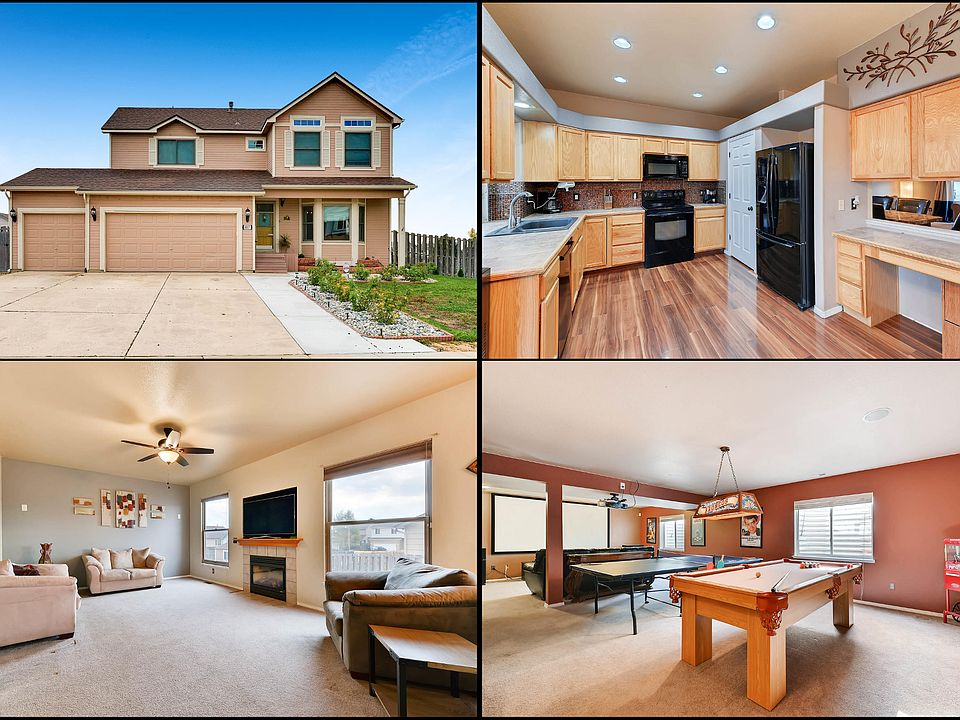 Stunning 5 bedroom home in this quiet Woodmen Hills neighborhood just minutes to Peterson AFB and Ft Carson. The updated, large open kitchen has gleaming wood floors and huge pantry that is open to family room where you can entertain in front of a cozy warm gas log fireplace. The huge living and dining room is great for quiet reading. Four of the five oversized bedrooms are upstairs featuring the massive master suite with vaulted ceilings and a beautiful 5 piece master bath. One of the bedrooms has huge built in two person desk that is perfect for homework and games yet large enough to also serve as a bedroom. You'll love the recreation / media room that is large enough to hold a full size pool table and ping pong table yet even more space to watch your favorite movies. The massive fenced back yard has plenty of room to play and large wood deck. There is plenty of built in storage throughout including over-sized closets, a storage shed + the attached 3 car garage.