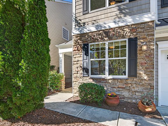 Welcome to 8017 Morrell Lane — a gorgeous 3BR+, 2.5BA home in sought-after Southpoint Terrace, where comfort and convenience meet in a peaceful, tree-lined setting. The inviting covered front porch and dramatic, high-ceilinged entryway open into a bright, open-concept main level featuring engineered hardwoods, designer lighting, fresh paint, and graceful archways that add architectural character throughout. At the heart of the home, the kitchen shines with quartz countertops, a chic tile backsplash, stainless steel appliances, gas range, island, and abundant cabinet and prep space. The adjoining dining area and living room are framed by windows overlooking the tranquil backyard and wooded views. A French-door flex room offers the ideal setup for a home office, guest room, fourth bedroom, or creative studio, while an updated half bath completes the main level. Upstairs, a versatile loft provides extra living or lounging space. The expansive primary suite is a peaceful retreat with calming tree views and features a relaxing garden tub, separate shower, double vanity, and an oversized walk-in closet. Two additional bedrooms — each with double windows and walk-in closets — share a spacious full bath, while a linen closet and large laundry room add convenience. Outside, the private backyard is perfect for relaxing or entertaining while enjoying the sights and sounds of nature. Bird enthusiasts will love the variety of species that visit throughout the year — from chickadees and blue jays to wrens, finches, robins, and cardinals. This private, nature-filled oasis offers a rare backdrop for such a central location. Additional features include a freshly painted garage with three overhead storage systems, plus two exterior storage spaces at the back of the home. Notable updates include a new roof (2022), Lennox HVAC (2018), new carpet, new paint, and new lighting — truly move-in ready. Southpoint Terrace offers easy living with low HOA fees that cover front and backyard landscaping, in addition to so much more. This patio home does not share living-space walls with neighbors and is just a short walk to the American Tobacco Trail. With its thoughtful updates, natural beauty, and prime location near Southpoint, Duke, UNC, RTP, RDU, and Jordan Lake, this home is a true South Durham gem.