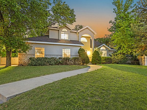 Exceptionally Elegant Two-Story Home with Finished Basement and Sunroom! Located in the highly sought-after Canyons School District with top-rated schools, this 5 Bed, 3.5 Bath residence ensures quick access to desirable venues and daily conveniences, such as cafs, restaurants, Silicon Slopes (major tech employers and business parks), ski resorts, libraries, sports complexes, Bell Canyon Trail, South Towne Center, Lone Peak, and Dimple Dell Regional Park. Nestled on a 0.26-acre cul-de-sac lot within this quiet and friendly community, the move-in ready home exudes sophistication with a grand covered entrance, mature landscaping, and a two-story foyer. Tastefully finished with neutral tones, the interior features hardwood floors, soft natural light, durable tile floors, cozy living room, and a fireplace family room. Entertain in the upgraded gourmet kitchen, which has newer stainless-steel appliances (2022), granite counters, gas stove, center island, and dining area. Host friends in the luminous newer sunroom (2022), or opt to gather in the basement rec room. Two bedrooms and one full bathroom complete the fully-finished basement. Relax in the oversized primary bedroom with tray ceilings, double walk-in closets, and an en suite boasting a jetted tub, dual sinks, and a separate shower. Two upper-level bedrooms and a full bathroom afford unparalleled comfort. Other features: 2-car garage w/epoxy floors, RV parking, laundry room with sink and clothing rack, swing set, fenced backyard, newer roof (2018), and more! Don't miss this opportunity-schedule your own private showing today!